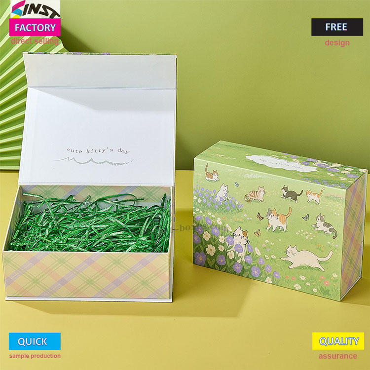 Is stíl gleoite agus leighis é an bosca bronntanais siogairlín plush seo atá péireáilte le patrúin seiceála glasa éadroma agus beige, rud a fhágann go mbraitheann daoine níos fearr ar an gcéad amharc. Tá an Bosca Bronntanais siogairlín gleoite Cat Plush déanta as cairtchlár tiubh, atá cearnach agus nach bhfuil sé deformed go héasca, agus ní bheidh sé brúite nuair a shuiteáil pendants plush nó eochairshlabhraí. Tá an modh oscailte an-speisialta, le dearadh smeach agus líneáil glas Lafite, rud a thugann mothú searmanas nuair a bhíonn bronntanais cosúil le clúdaigh dearga a oscailt.