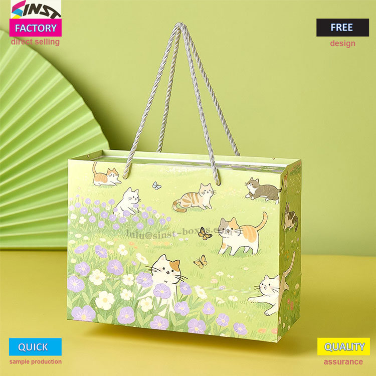 Is cairtchlár atá neamhdhíobhálach don chomhshaol é ábhar an Bhosca Bronntanais siogairlín gleoite Cat Plush, ar féidir é a chaitheamh go díreach isteach sa bhruscar le haghaidh athchúrsála tar éis é a úsáid. Is maith le custaiméirí thar lear an dearadh glas seo freisin. Ina theannta sin, is féidir méideanna agus patrúin a shaincheapadh de réir mar is gá, mar shampla lógónna branda priontála nó beannachtaí saoire, ar féidir iad a chrochadh ar mhálaí nó ar ghluaisteáin chun a leibhéal sofaisticiúlachta a thaispeáint.
