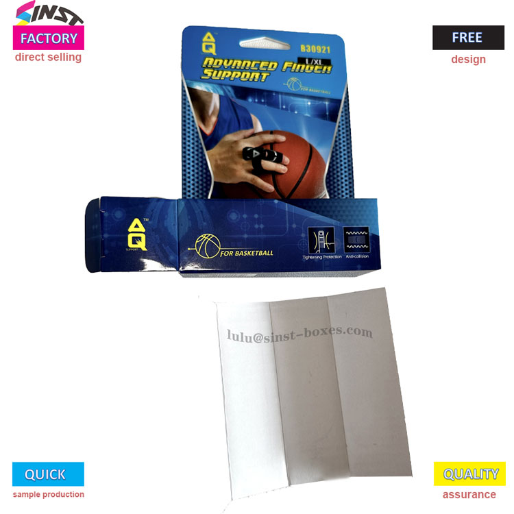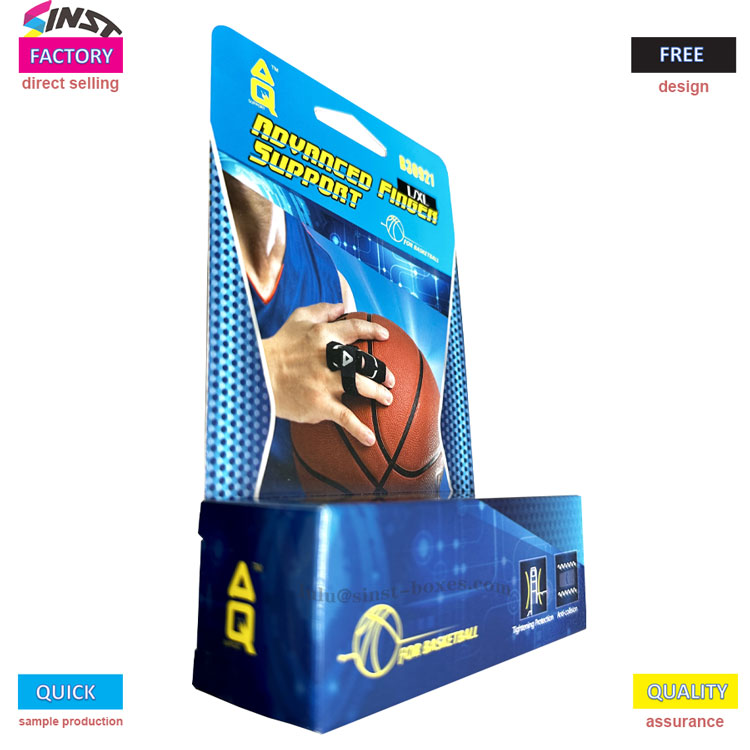Tá an bosca cárta cots finger cispheile seo deartha go sonrach le haghaidh imreoirí cispheile chun do threalamh cosanta a "chosaint" ón taobh amuigh go dtí an taobh istigh. Tá an bosca cárta muinchille Finger den chuid is mó i ndath gorm clasaiceach, le íomhá dhinimiciúil na n-imreoirí cispheile i seilbh na liathróide le cliabháin mhéara dubh clóite ar an tosaigh. Léiríonn na carachtair buí "TACAÍOCHT ADVANCED FINGER" ar an mbarr an cheist go díreach, agus tá an tsamhail marcáilte sa chúinne uachtarach ar dheis. Tá an t-aitheantas méid thíos soiléir, agus is féidir leat do riachtanais cruth láimhe a aithint go héasca. Leagann an taobh agus an bun béim arís agus arís eile ar fheidhmeanna "DO Cispheil", "Cosaint Tightening" agus "Frith-imbhualadh", agus tá na tréithe spóirt luchtaithe go hiomlán.