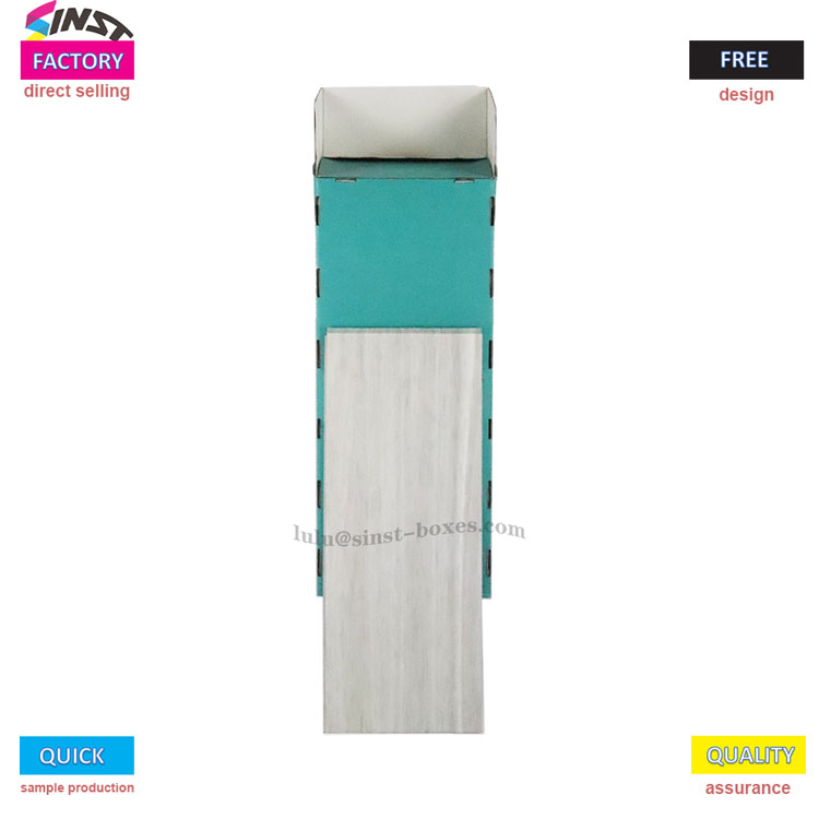 Úsáidtear an raca taispeántais roctha Stáiseanóireacht seo go príomha chun míreanna éagsúla stáiseanóireachta a thaispeáint. Tá cruth dronuilleogach ar an gcorp iomlán agus tá sé déanta as adhmad éadrom nó ábhar gráin adhmaid bréige bán, a bhfuil cuma athnuachana agus uigeachta air. Tá trí urrann stórála oscailte deartha go speisialta ar an tosaigh, i dathanna glasa nó gorm-uaine, atá foirfe chun stáiseanóireacht a shórtáil agus a stóráil. Cibé an leabhair, leabhair nótaí éagsúla, nó stíleanna éagsúla pinn é, is féidir iad go léir a chur go daingean taobh istigh. Ina theannta sin, tá struchtúr trapezoidal beagán chun tosaigh ag an raca taispeána seo, rud a fhágann go bhfuil sé níos éasca é a bhaint amach agus míreanna a chur air gan mórán iarrachta.
