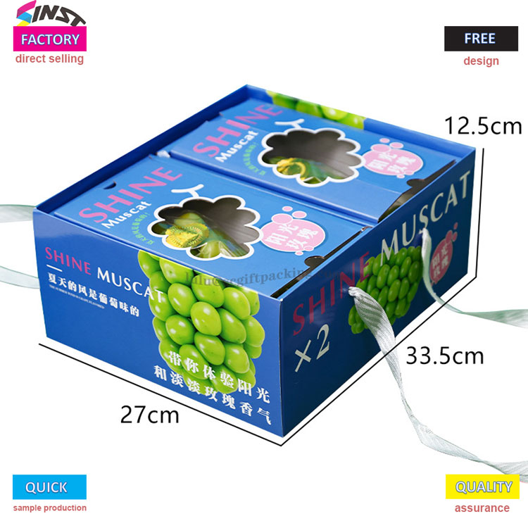 Mar an mhonarcha foinse pacáistithe, sheol Sinst boscaí pacáistithe fíonchaor ar leith i méideanna agus dathanna éagsúla, atá oiriúnach do ríomhthráchtáil, bronntanas, agus margaí bia úra! Tá an príomhchomhlacht déanta as ábhar r-tíl threisithe (frithsheasmhach in aghaidh brú agus titim), ag soláthar scéimeanna datha clasaiceacha ar nós glas, gorm, agus bán, péireáilte le slogananna bunaithe ar chásanna ar nós "Sunshine Rose" agus "Is blas fíonchaor é" gaoth an tsamhraidh. Taispeánann an dearadh trédhearcach fuinneoige/strap láimhe úire na bhfíonchaora, rud a fhágann gur "rogha ildánach" iniompartha agus tarraingteach é le haghaidh pacáistiú bosca bronntanais fíonchaor!