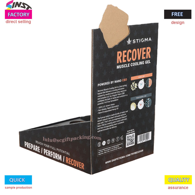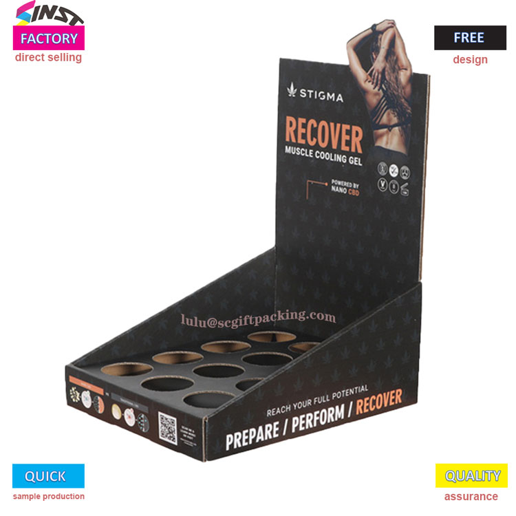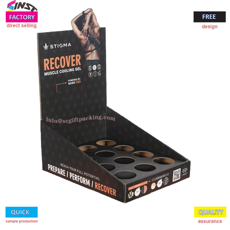 Sa bhosca taispeána táirge sláinte seo le páipéar spáis folamh tá aeistéitic íostach le stampáil te chúlra dubh agus éifeacht amhairc chumhachtach, ag cur béime ar an bpríomhphointe díola a bhaineann le scíthe matáin tar éis aclaíochta. Glacann an raca taispeána dearadh stórála poll ciorclach il eangaí, a chobhsaíonn an taispeántas ach a scaoileann uigeacht na dtáirgí freisin,