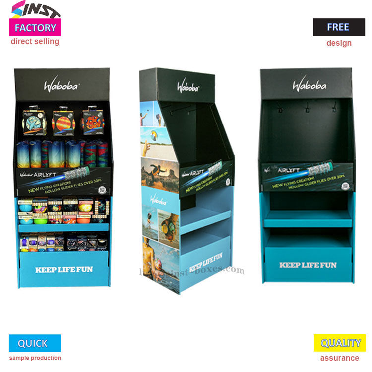 Díríonn an raca taispeána dath dubh agus gorm seo, atá deartha go sonrach do bhréagáin eitilte, ar "nochtadh láidir branda + taispeáint bunaithe ar radharc" mar chroílár, ag réiteach go cruinn na pointí pian "deacair aird a tharraingt agus éasca le tranglam" de bhréagáin eitilte ollmhargadh tráchtála, agus a bheith ina "freagracht tráchta" as bréagáin leanaí agus réimsí trealaimh spóirt. Tá seilf ilchiseal an Seastán Taispeána Bréagán an-solúbtha, ag freastal go foirfe ar an raon iomlán bréagán eitilte: